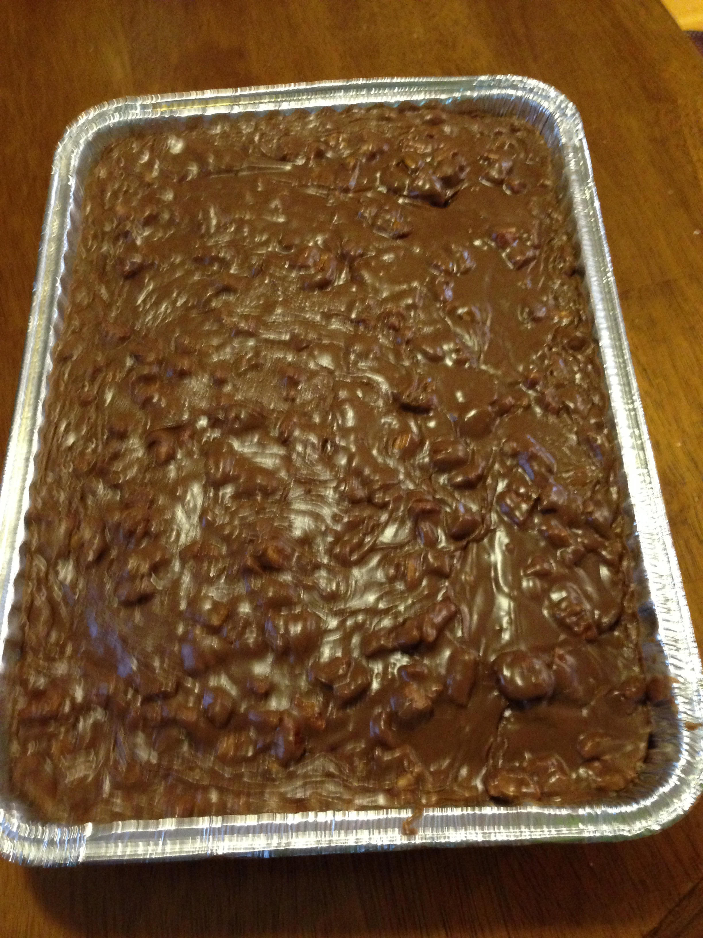 Mix flour and sugar and set aside. Bring oleo, water, oil and cocoa to a boil and pour over flour and sugar. Mix well. Add buttermilk, soda, vanilla and eggs. Bake in a greased 9x13 pan for 30 minutes at 325 degrees. Frost.
